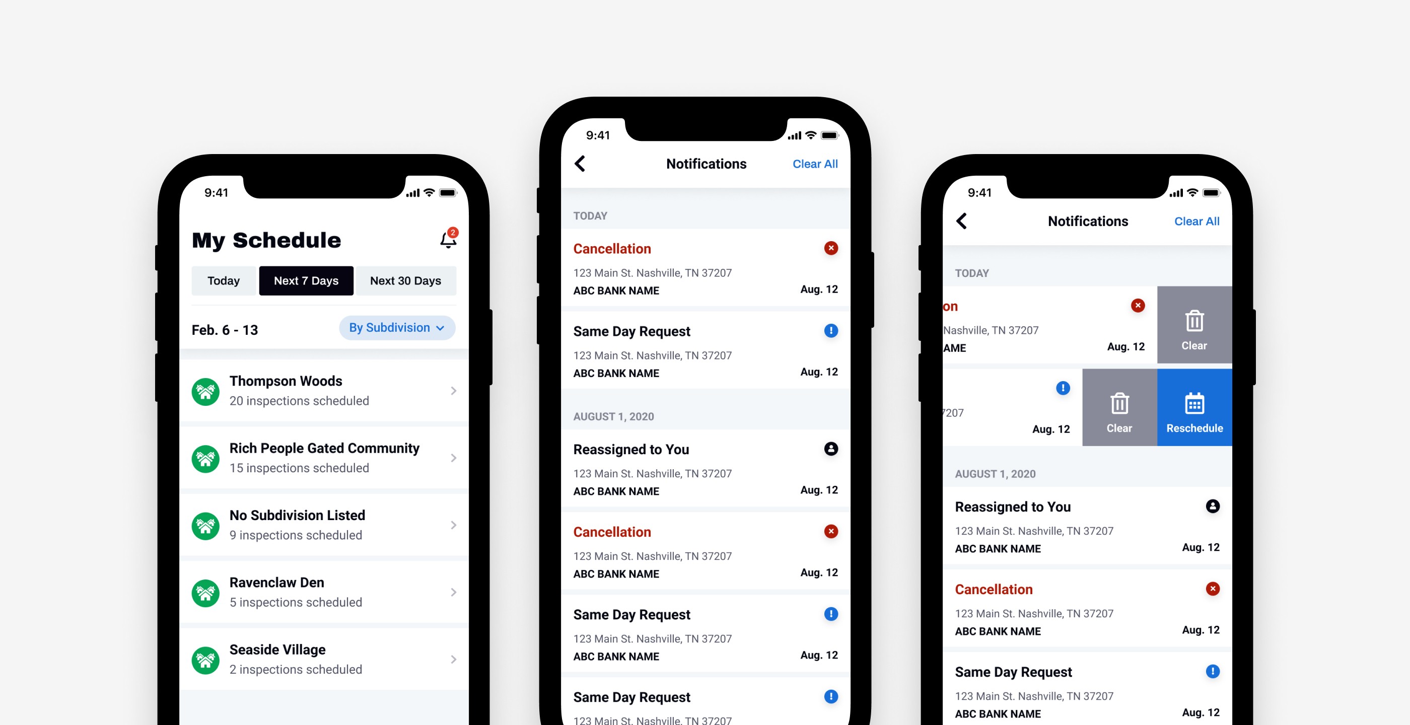 A similar problem would occur when an inspector was given a last minute assignment for the day while out on their route. An in-app notification center was a simple win to notify them on the fly of these schedule adjustments.